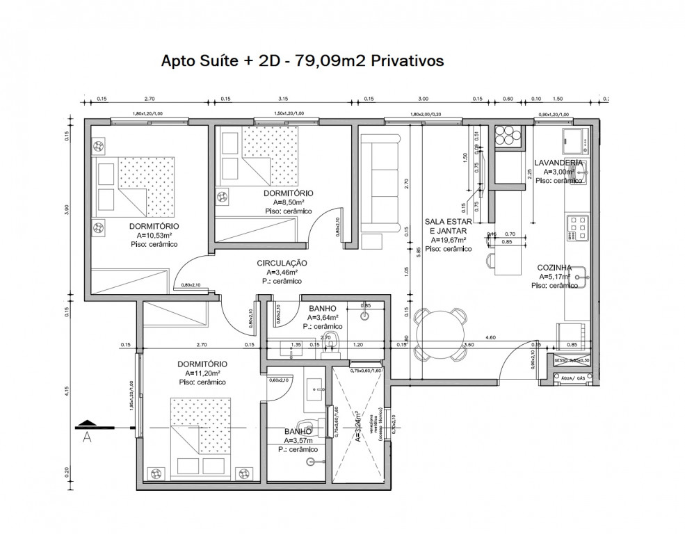 | Quartos | SUÍTE + 2 DORMITÓRIOS |