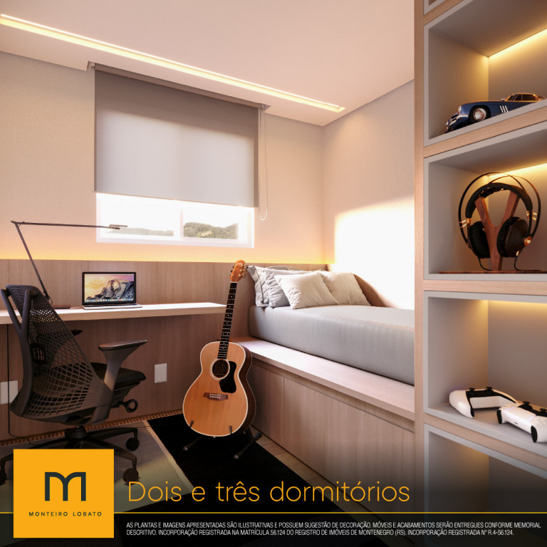 | Detalhes | Apartamentos com suíte e mais um dormitório, ambiente social integrado, banheiro social, e sacada externa. Com opcional de churrasqueira ou lareira. Com opção de vaga de estacionamento simples ou dupla. Prédio em localização residencial, em rua tranquila no Bairro Rui Barbosa, distante apenas 150m da rua Ramiro Barcelos. Com boa infraestrutura, elevador, rooftop, espaço coworking, bar invertido, brinquedoteca, horta coletiva, bike sharing e área gourmet. |