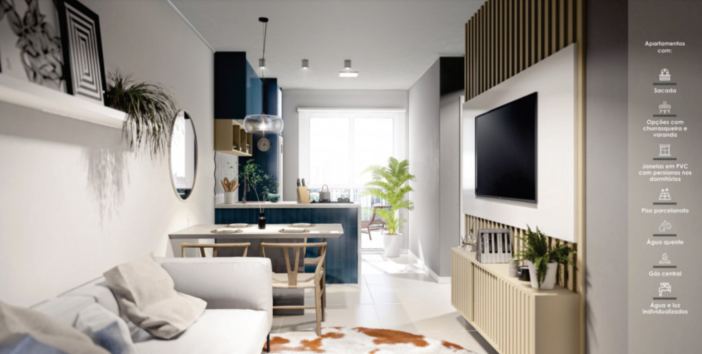 | Área Imóvel | Aptos 2D: Área privativa de 50m2, Área Global de 64,22m2 + Box Aptos Suíte + 1D: Área privativa de 55,52m2, Área Global de 71,95m2 + Box Aptos Suíte + 2D: Área privativa de 68,70m2, Área Global de 89m2 + Box |