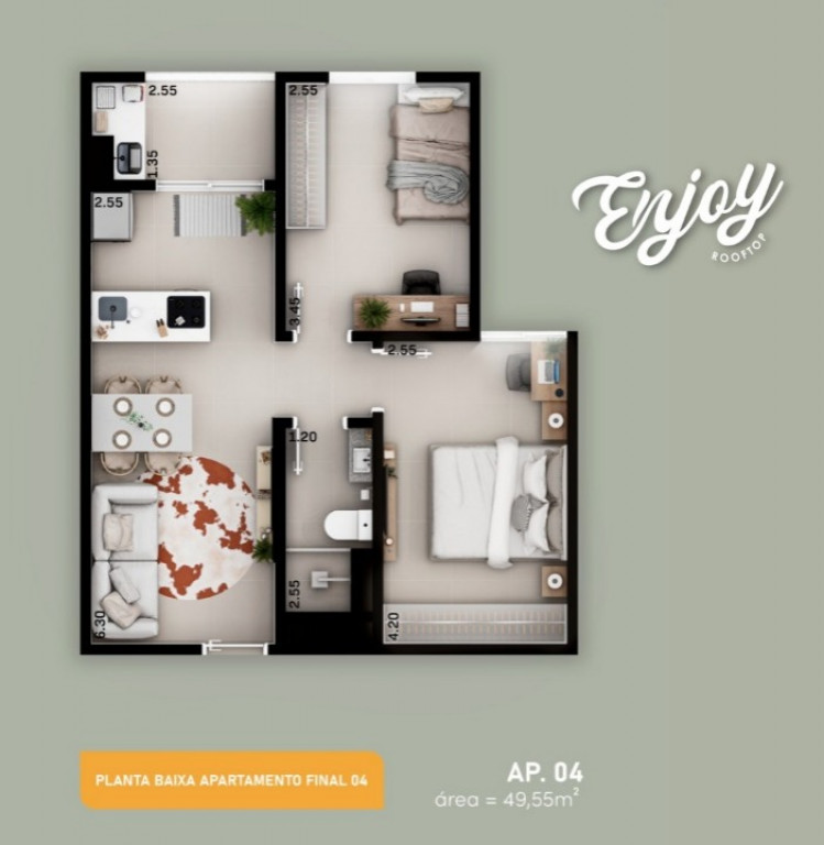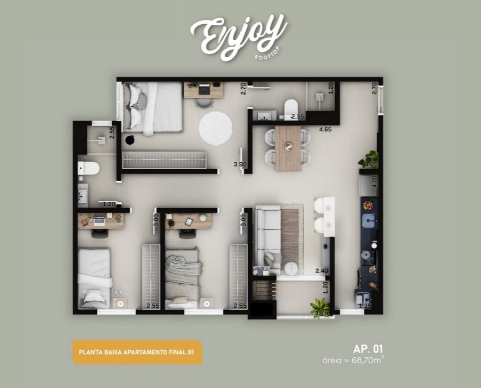 | Quartos | Opções de plantas: Aptos 2D | Apto Suíte + 1D | Apto Suíte + 2D |