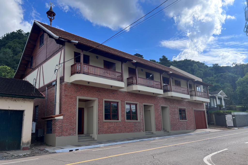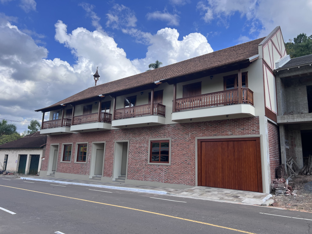 | Detalhes | Apartamento semi exclusivo (apenas 4 unidades), em prédio com ótimo padrão construtivo, localizado no centro de Maratá (em local alto livre de risco de inundações). Composto de 2 dormitórios, ambiente social integrado com ampla sacada na frente, cozinha semi mobiliada, banheiro social mobiliado, área de serviço, lavabo e amplo pátio nos fundos, em varanda com cobertura parcial, churrasqueira, pia auxiliar e espaço para pequeno depósito. Outro pátio coletivo nos fundos, com gramado e árvores frutíferas. Garagem coberta e fechada, com acesso por portão eletrônico, e acesso interno ao hall do apartamento. Prédio misto, com duas salas comercias no térreo, e apenas quatro apartamentos no segundo pavimento. Projeto diferenciado, com traços da arquitetura germânica, distante apenas 200m do Pórtico de entrada do município, quase em frente ao Posto Charrua. |