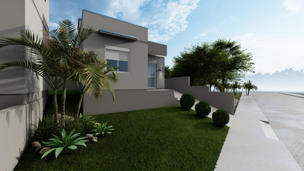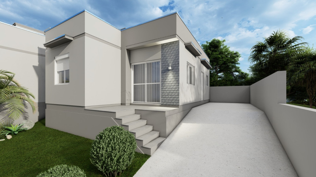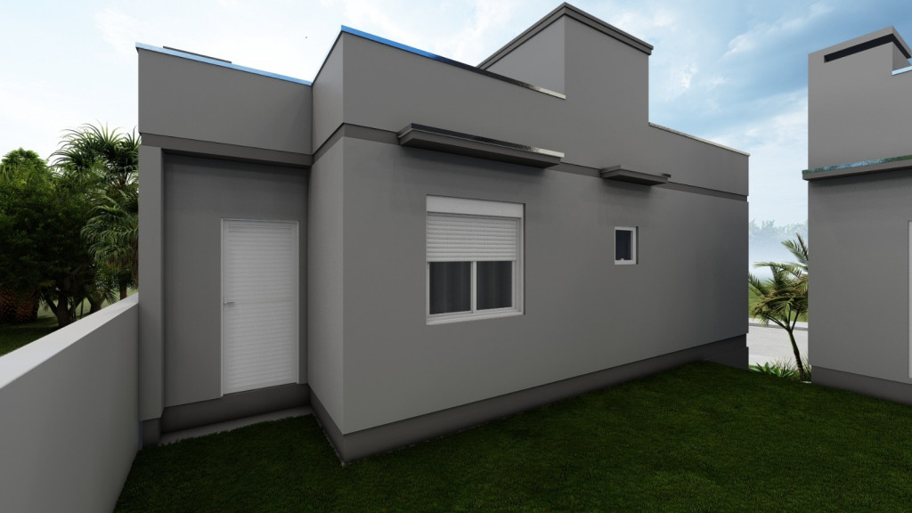Casa nova com dois dormitórios, sala de estar/jantar/cozinha c/churrasqueira integrada, banheiro social e área de serviço.