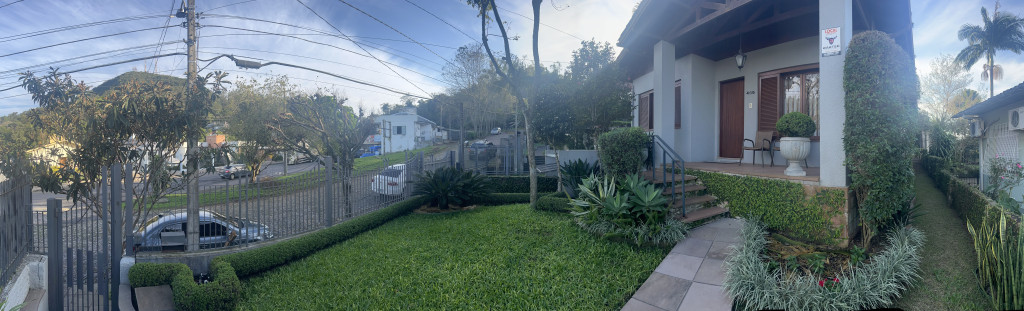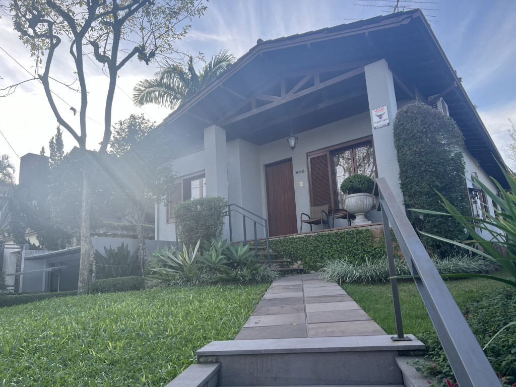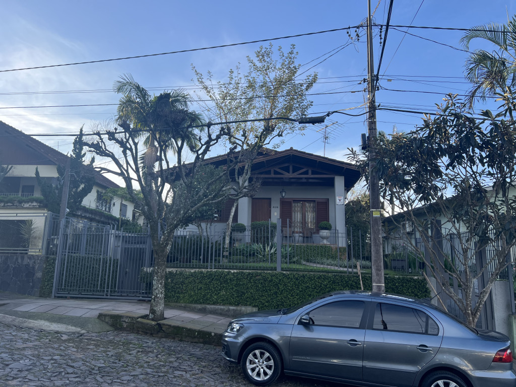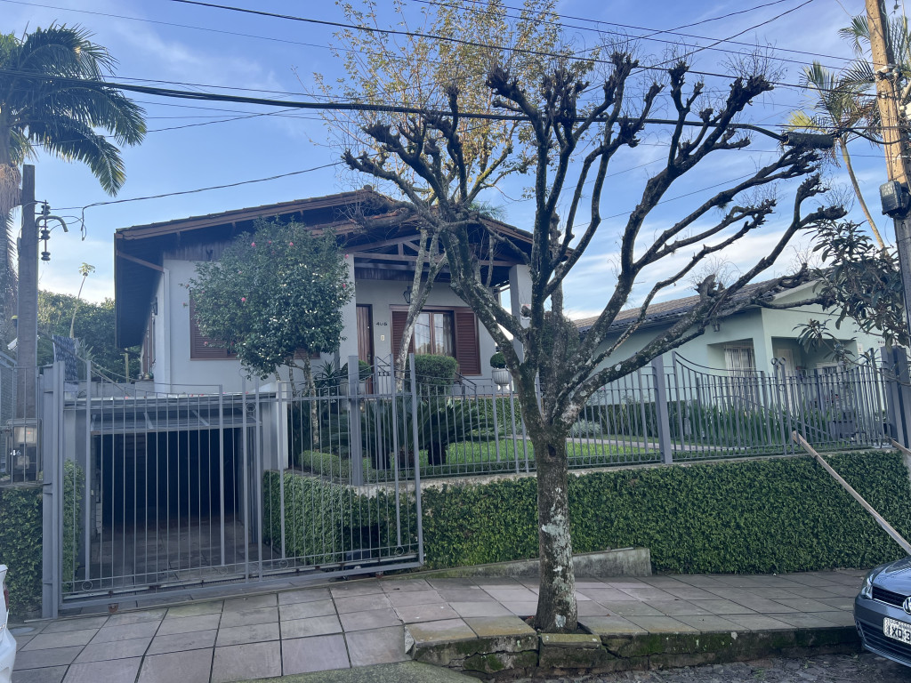 | Detalhes | Casa em localização central, em local alto com linda vista do Morro São João. Em amplo terreno com 706m2, sendo um terreno regular de 12m x 36m, e outro terreno nos fundos onde forma um "L" com 319m2. Casa com ótimo estado de conservação, composta por sala de estar/jantar com lareira, escritório, cozinha, área de serviço, banheiro social, suíte e dois dormitórios. Garagem fechada para dois carros no subsolo. Pátio fechado e com pomar e ajardinamento. |
