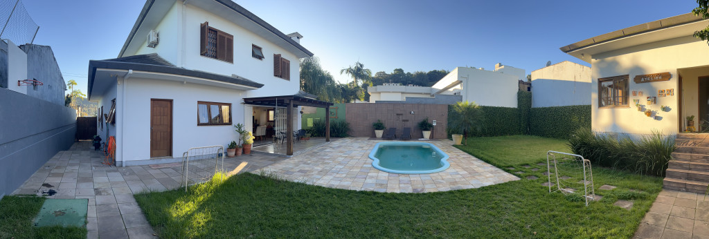 | Detalhes | Casa ampla e aconchegante, em local alto com ótima vista. Na rua Dr. Schmitz (parte alta) do Bairro Rui Barbosa. Garagem coberta e fechada para dois veículos (lado a lado), cozinha integrada com living, lavabo, área de serviço, sala de estar com lareira, suíte, três dormitórios (um com sacada), banheiro social, e anexo com depósito, banheiro e dormitório auxiliar. |