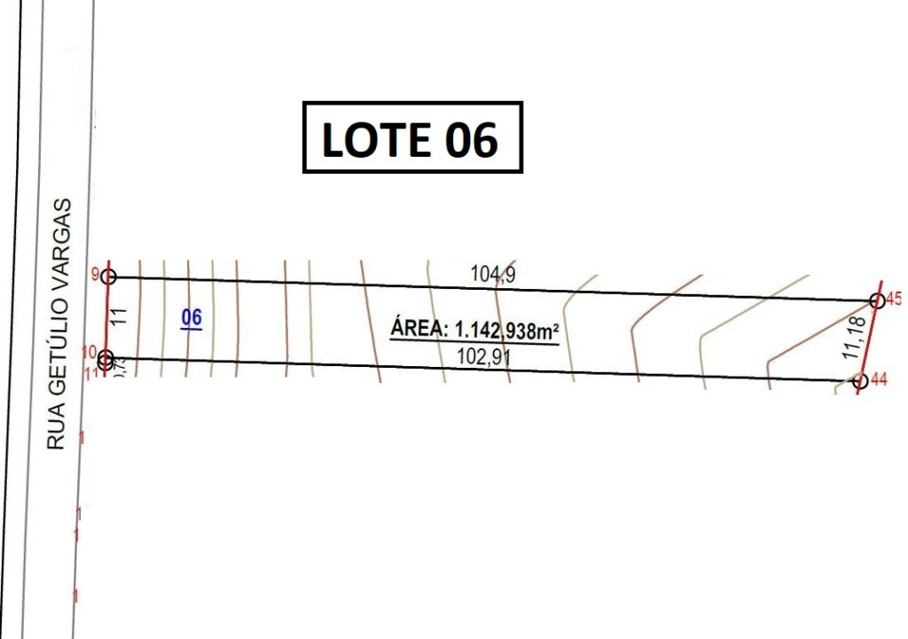 | Detalhes | Amplo terreno com 1.143,00m2, sendo 11 metros de testada junto a Rua Getúlio Vargas, bairro Santo Antônio, local alto, asfaltado. Com matrícula individualizada, pronto para construir. |