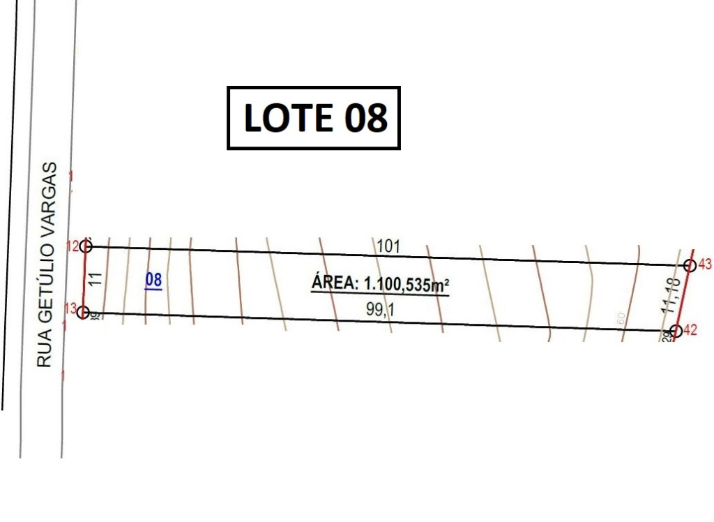 | Detalhes | Amplo terreno com 1.100,00m2, sendo 11 metros de testada junto a Rua Getúlio Vargas, bairro Santo Antônio, local alto, asfaltado. Com matrícula individualizada, pronto para construir. |