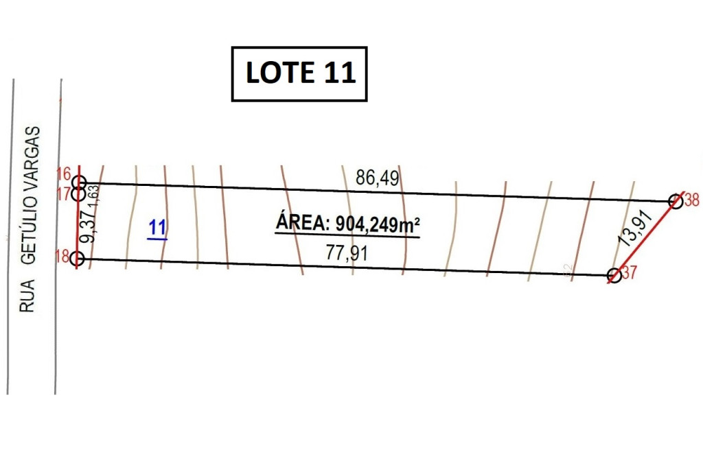 | Detalhes | Amplo terreno com 904,00m2, sendo 11 metros de testada junto a Rua Getúlio Vargas, bairro Santo Antônio, local alto, asfaltado. Com matrícula individualizada, pronto para construir. |