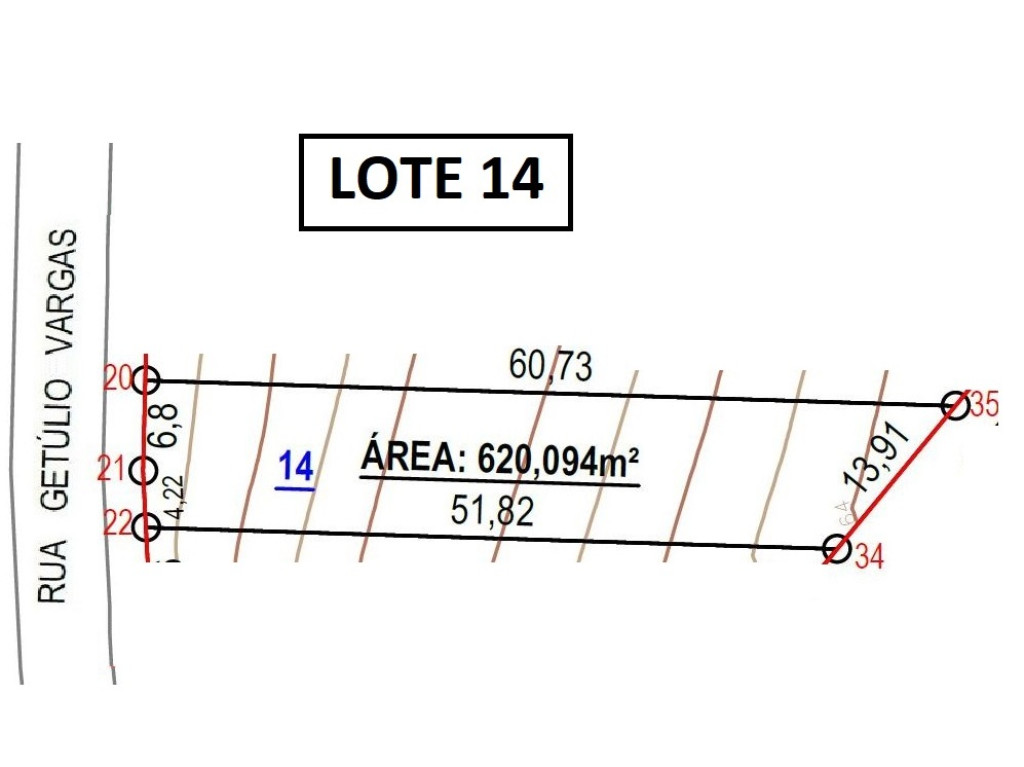 | Detalhes | Amplo terreno com 620,00m2, sendo 11 metros de testada junto a Rua Getúlio Vargas, bairro Santo Antônio, local alto, asfaltado. Com matrícula individualizada, pronto para construir. |